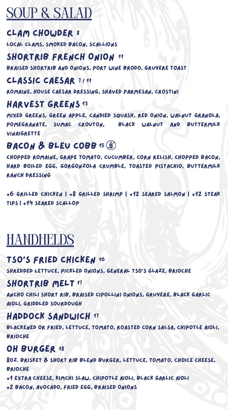 cup of New England clam chowser or daily soup with choice side salad of house salad, caesar salad, or spinach & goat cheese salad